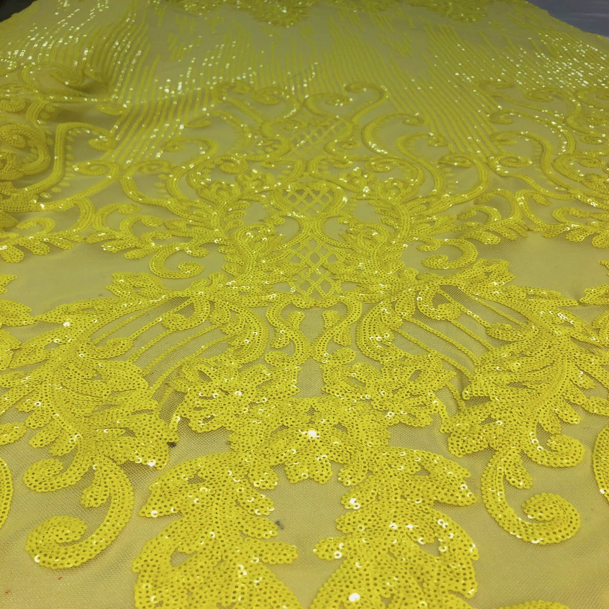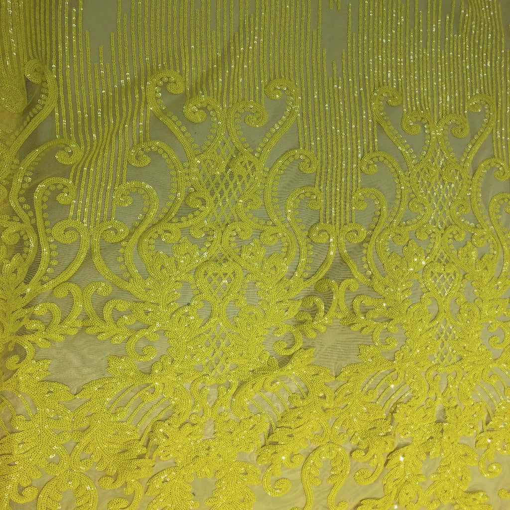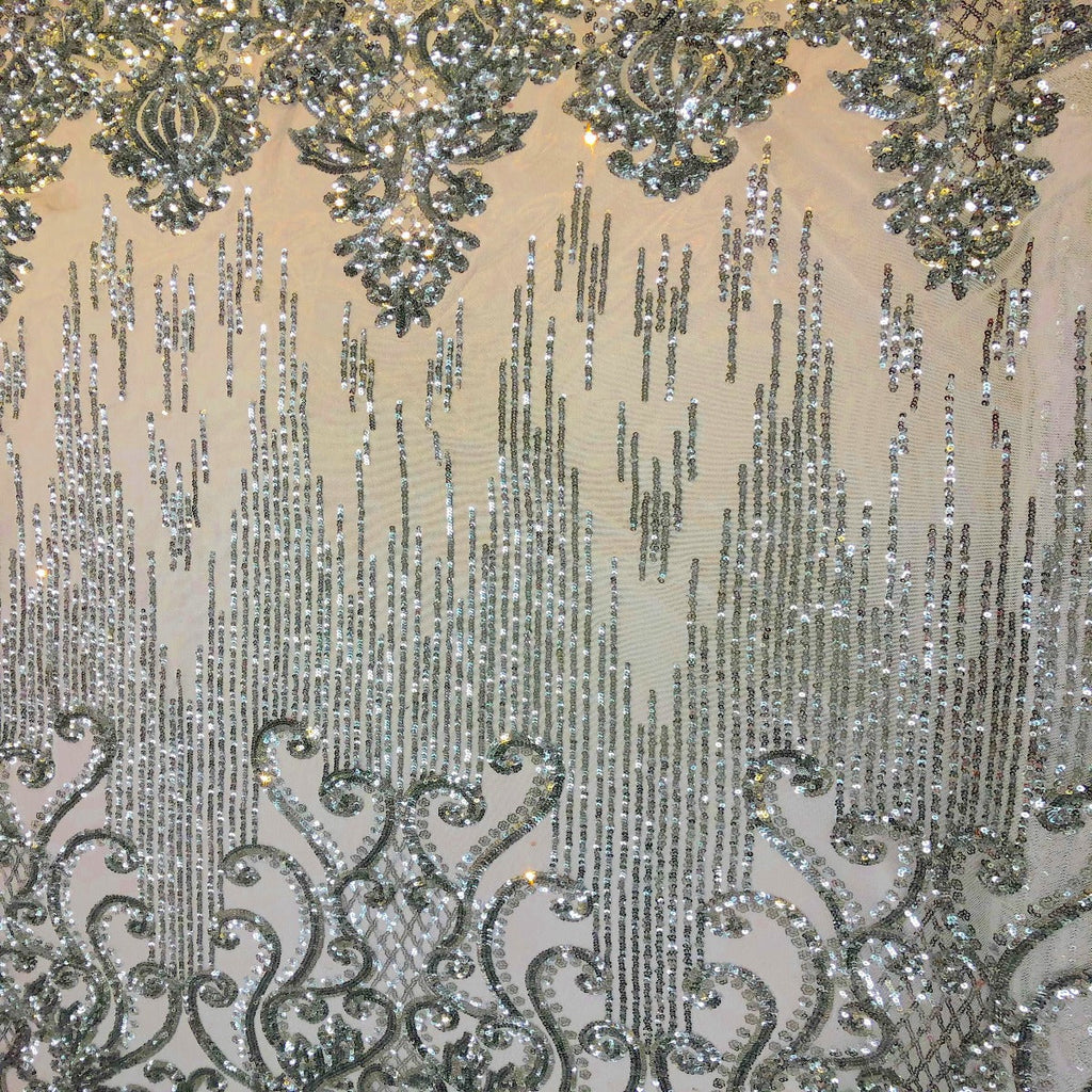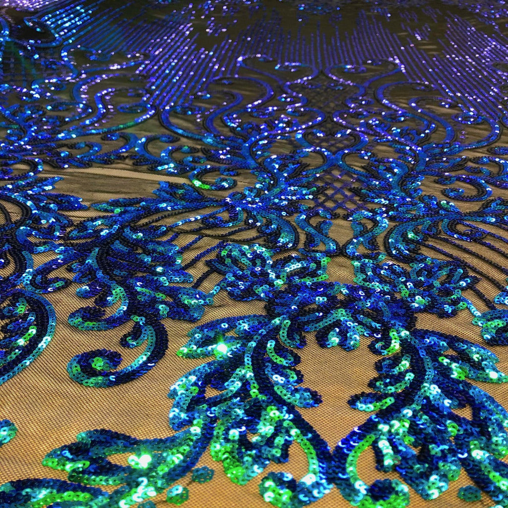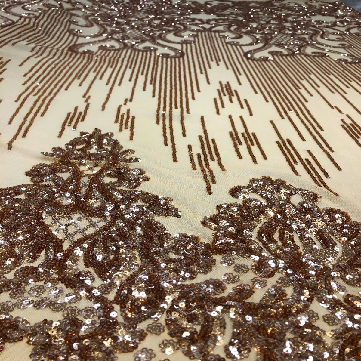 This beautiful and elegant sequins lace fabric is truly one of a kind. Designed with a stunning sequin pattern, it is backed with a four-way stretch nylon mesh fabric that ensures both comfort and flexibility. This versatile fabric is sold by the yard, and if you purchase more than one yard, you will receive a continuous piece. For example, ordering two yards will provide you with a piece measuring 60" x 72".