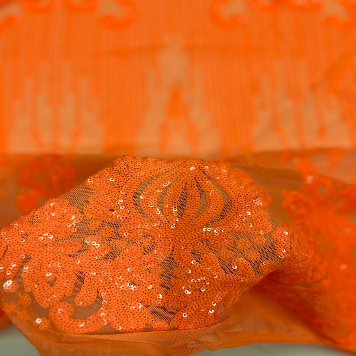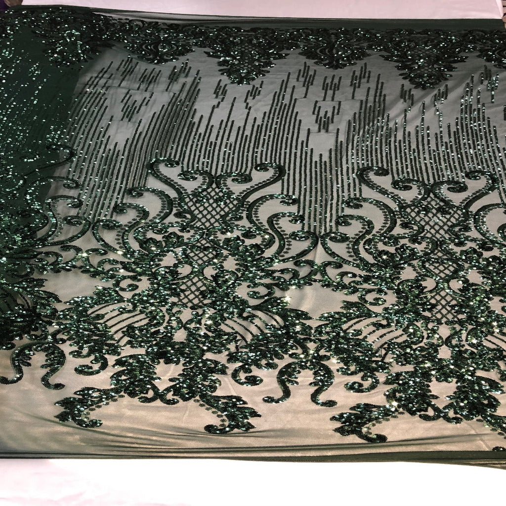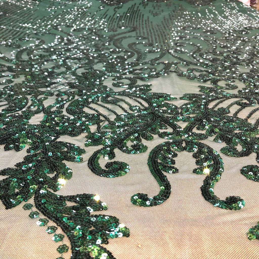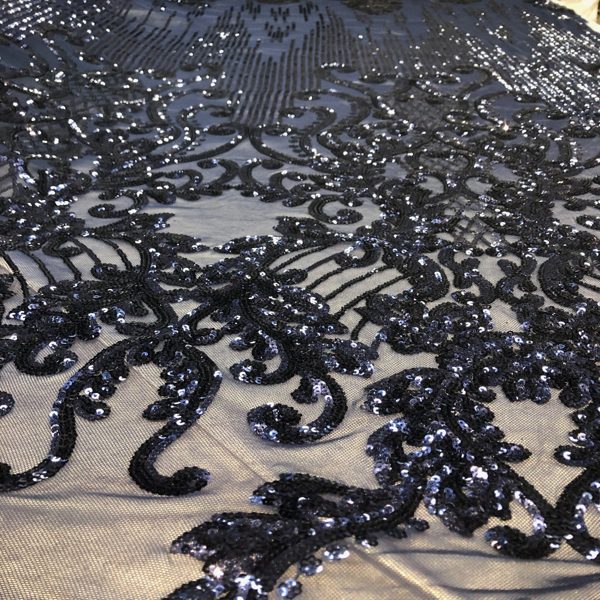 This beautiful and elegant sequins lace fabric is truly one of a kind. Designed with a stunning sequin pattern, it is backed with a four-way stretch nylon mesh fabric that ensures both comfort and flexibility. This versatile fabric is sold by the yard, and if you purchase more than one yard, you will receive a continuous piece. For example, ordering two yards will provide you with a piece measuring 60" x 72".