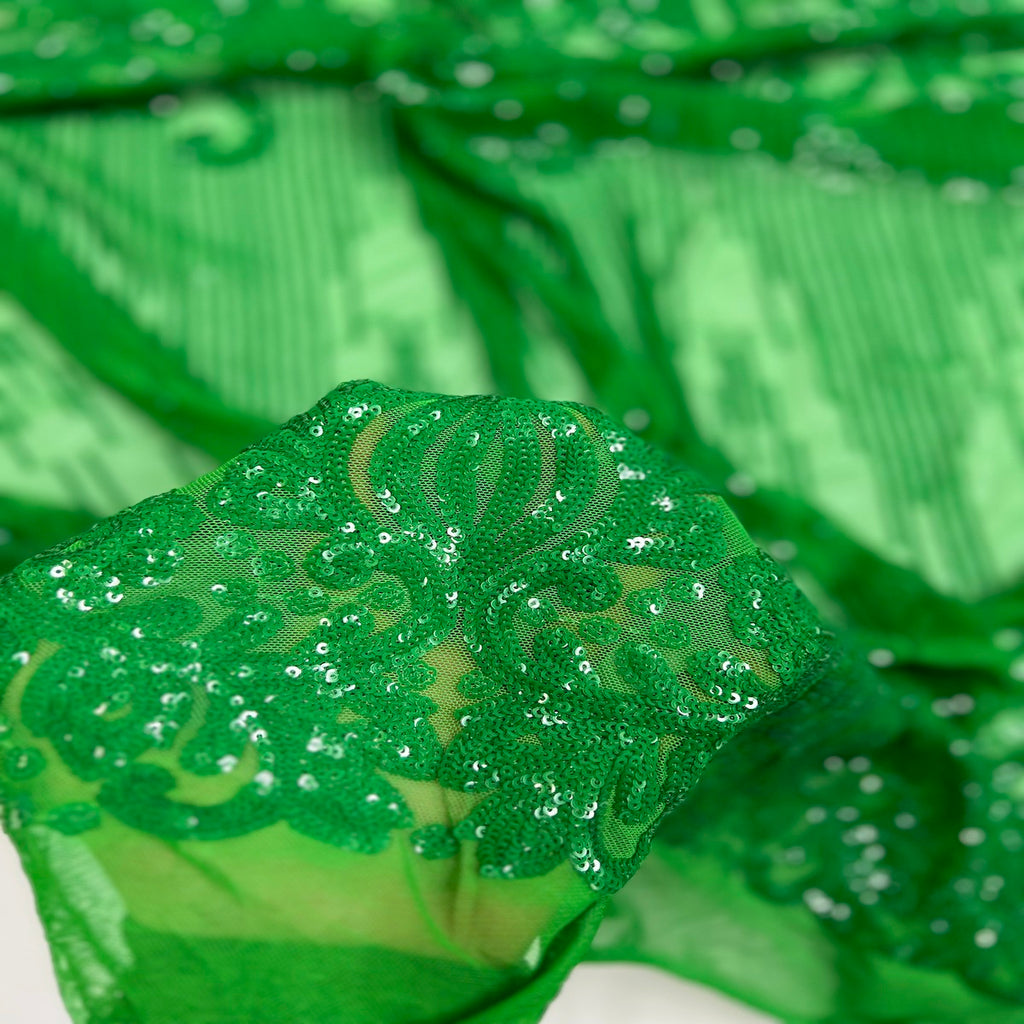 Width: The mesh measures 60" wide, while the sequins span 52"/54" wide.