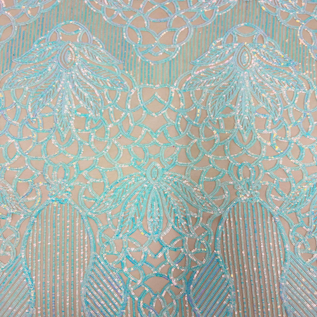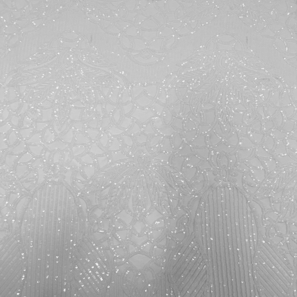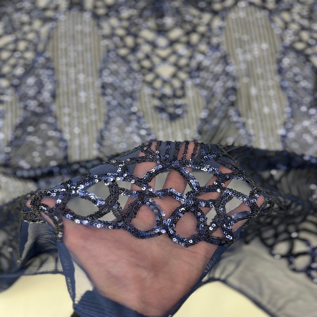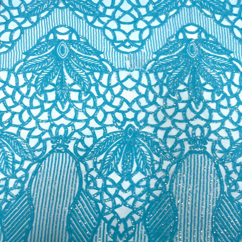 Discover the elegance of our stretch sequins lace fabric, designed to elevate your creations. Each piece is backed with a luxurious four-way stretch nylon mesh, ensuring comfort and flexibility, while a stunning sequin design adorns the entire fabric for that extra sparkle. Sold by the yard, you can enjoy the convenience of receiving your fabric in a continuous piece when ordering multiple yards. For example, ordering two yards will yield a generous piece measuring 60" x 72".