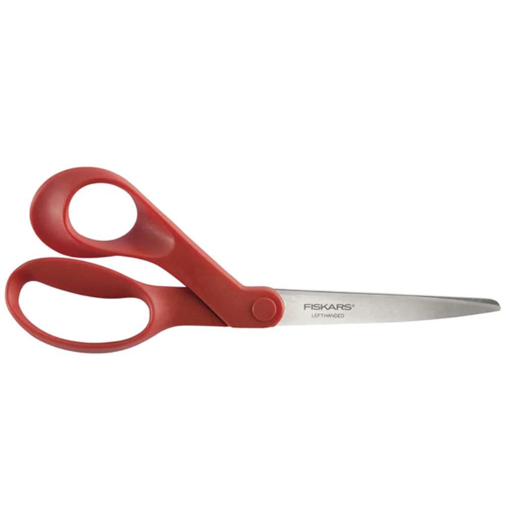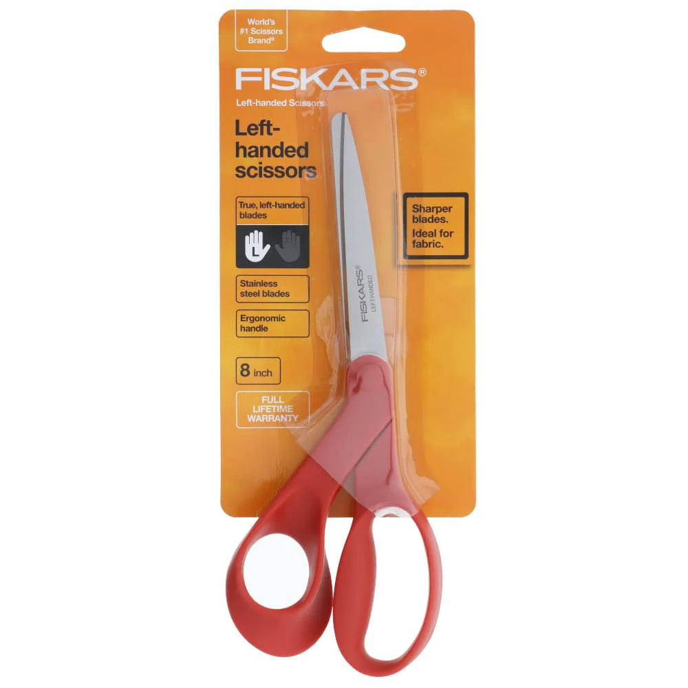 The Left-Handed Fiskars 8" All-Purpose Shears feature the same design as the Fiskars Original 8" All-Purpose Shears and add true left-handed blades to give left-handed users a premium-quality cutting tool. The high-grade stainless steel blades with a precision-ground edge that remains sharp and cuts to the very tip for superior performance. The lightweight design and ergonomic handle provide unbeatable cutting control, and the bent handle keeps the material flat for perfect cuts over and over. The Left-Handed Fiskars 8" All-Purpose Shears are excellent for cutting various materials, including denim, silk, and multiple layers of fabric.