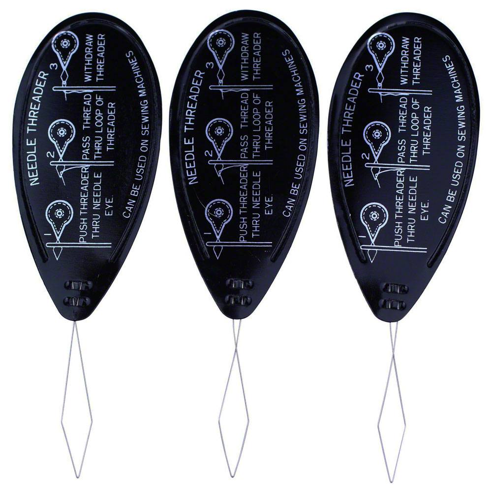 This is A needle threader makes threading your machine quick and easy. The threader easily slips through the eye of the needle, allowing you to feed the thread back through the needle hole. With the help of these handy tools, you will save time and reduce eye fatigue