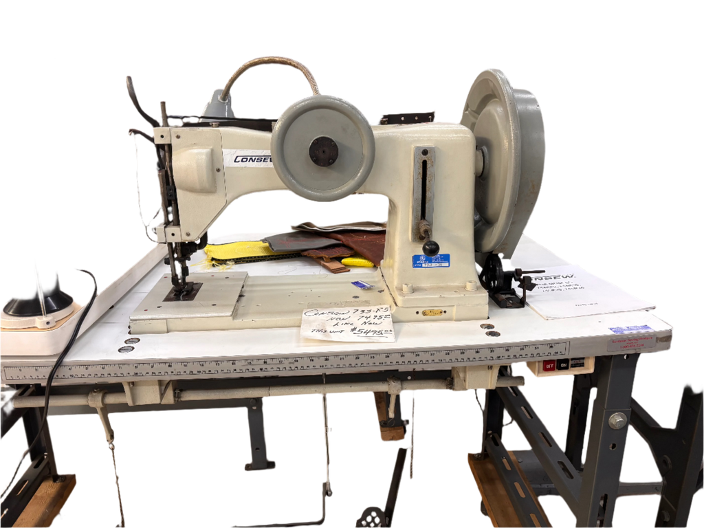 The Consew 733R‑5 is an industrial, extra-heavy-duty sewing machine designed for demanding applications such as sewing tarps, sails, webbing, harnesses, and other thick or bulky materials.
